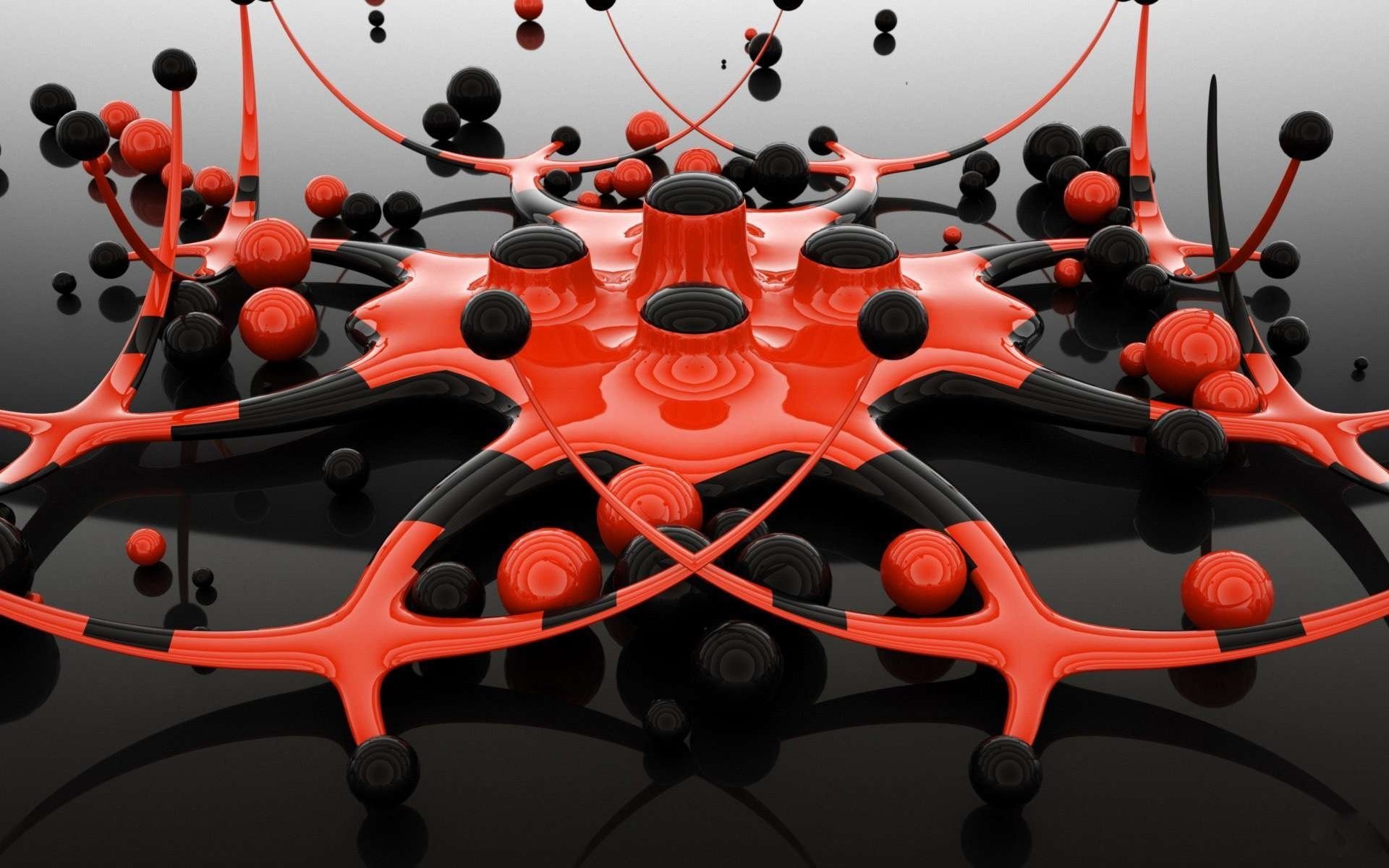 Черная с красным 3d абстракция шаров и линий - обои на рабочий стол
