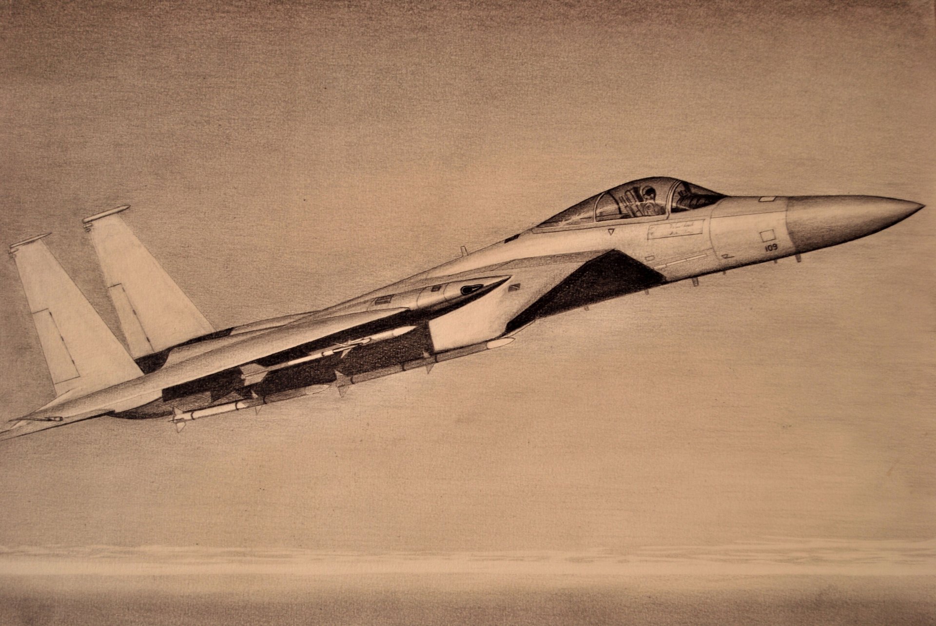 Рисунок карандашом тактического истребителя f-15 - обои на рабочий стол