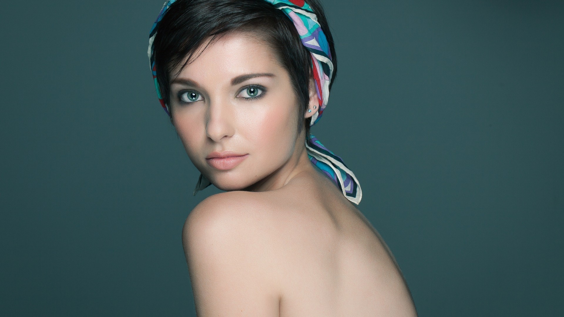 Обнаженная девушка-брюнетка в платке - обои на рабочий стол