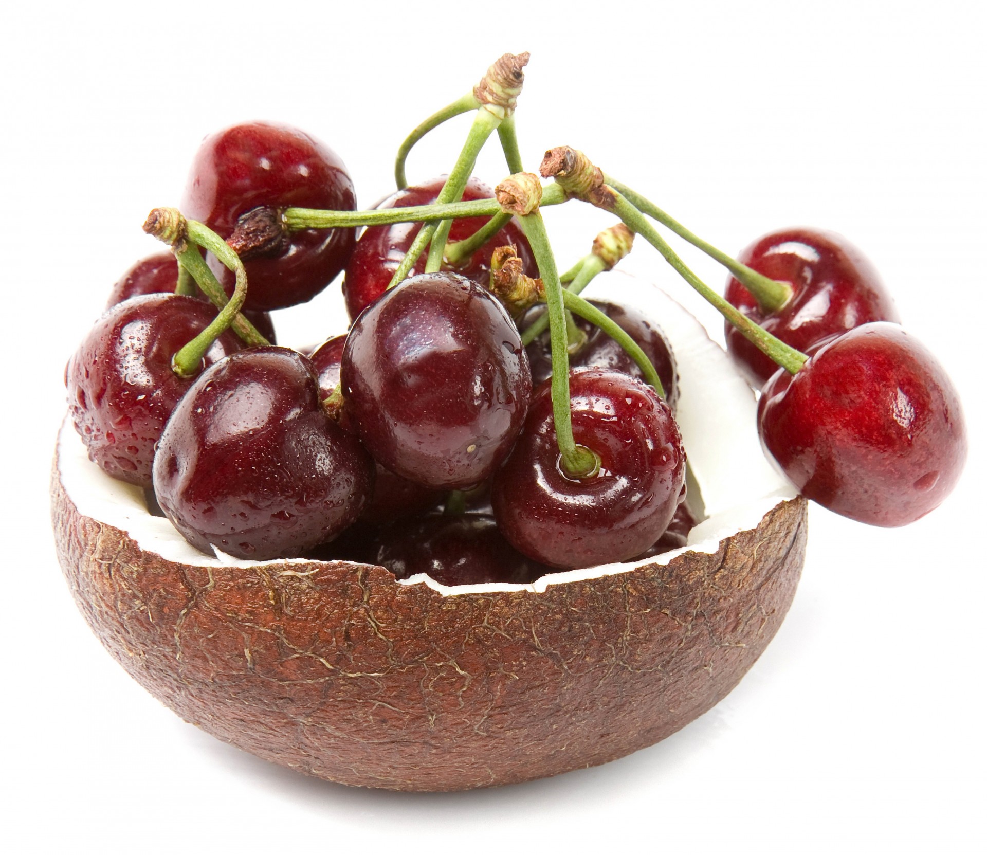 Спелая черешня в половине кокоса - обои на рабочий стол