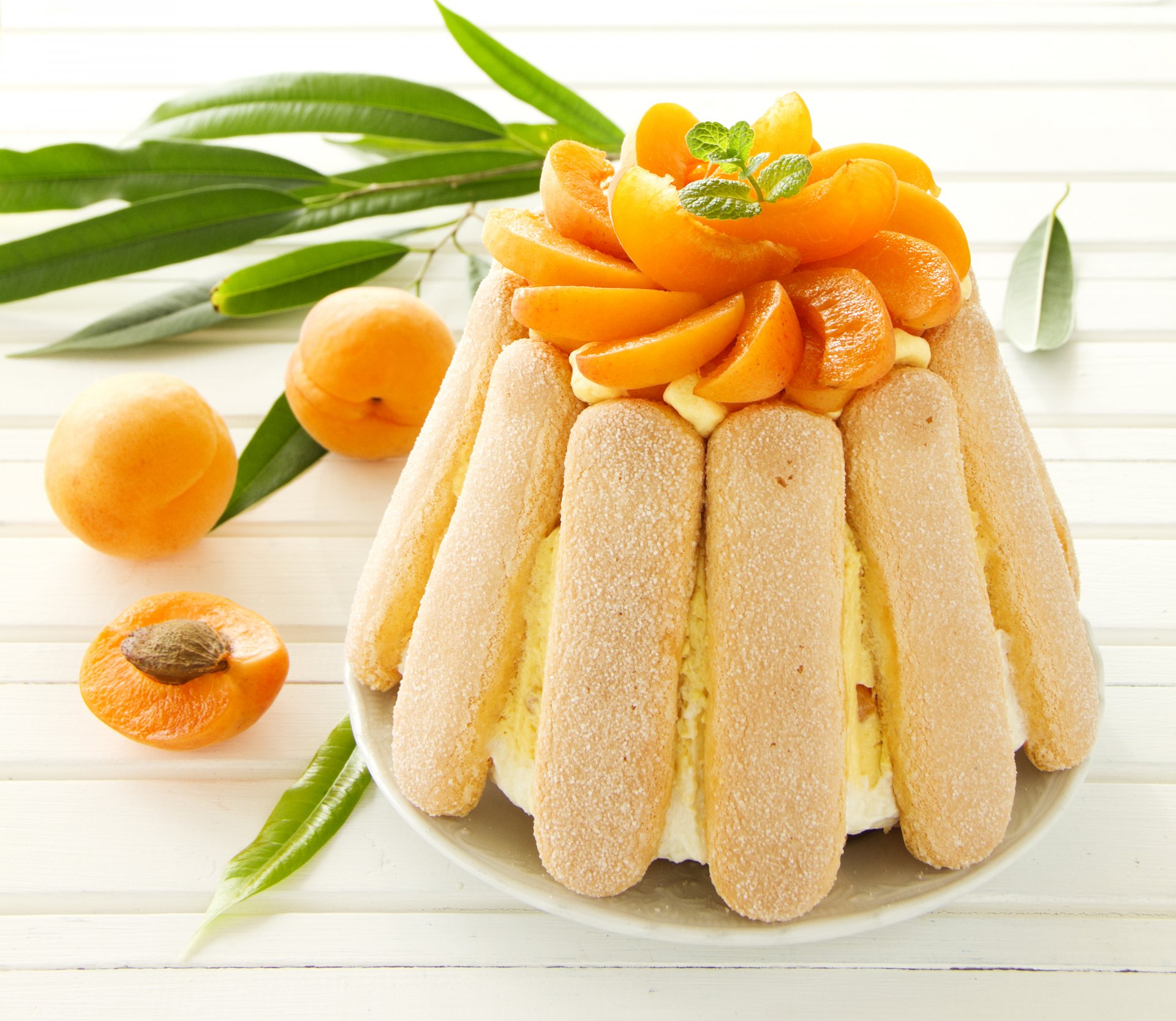 Творожный торт украшенный абрикосами и мятой - обои на рабочий стол
