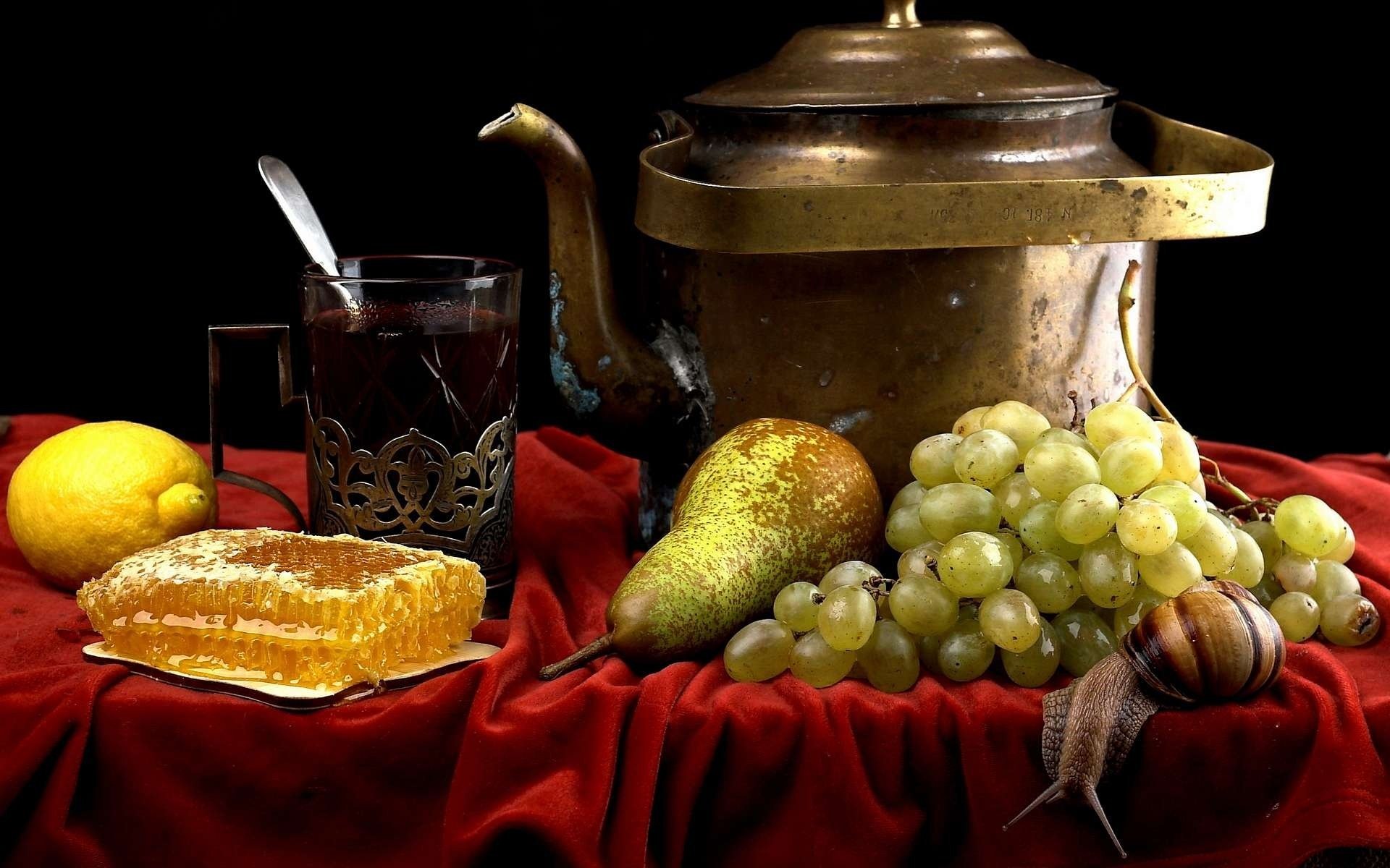 Чаепитие с фруктами, лимоном и медом - обои на телефон