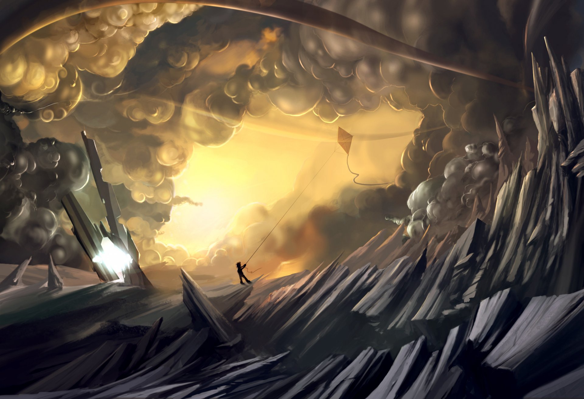 Теги:мальчик, горы, облака, воздушный, змей