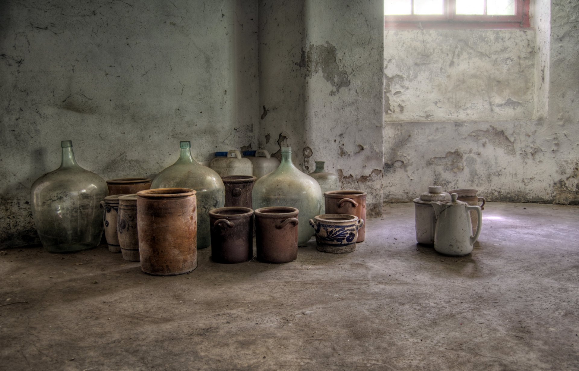 Комната с большими бутылками и керамической посудой - обои на рабочий стол