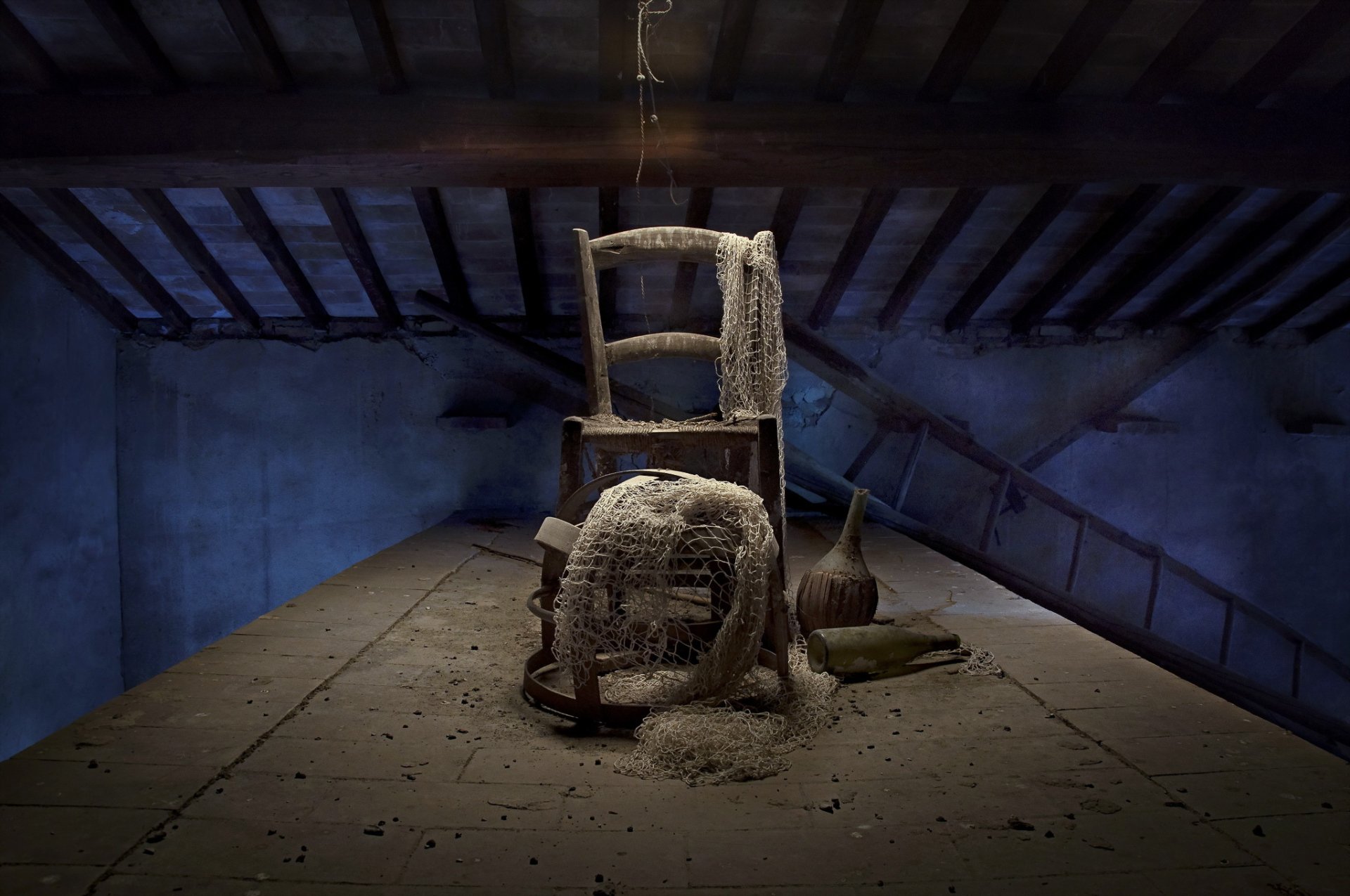 Сеть рыболовная на стуле на чердаке - обои на рабочий стол