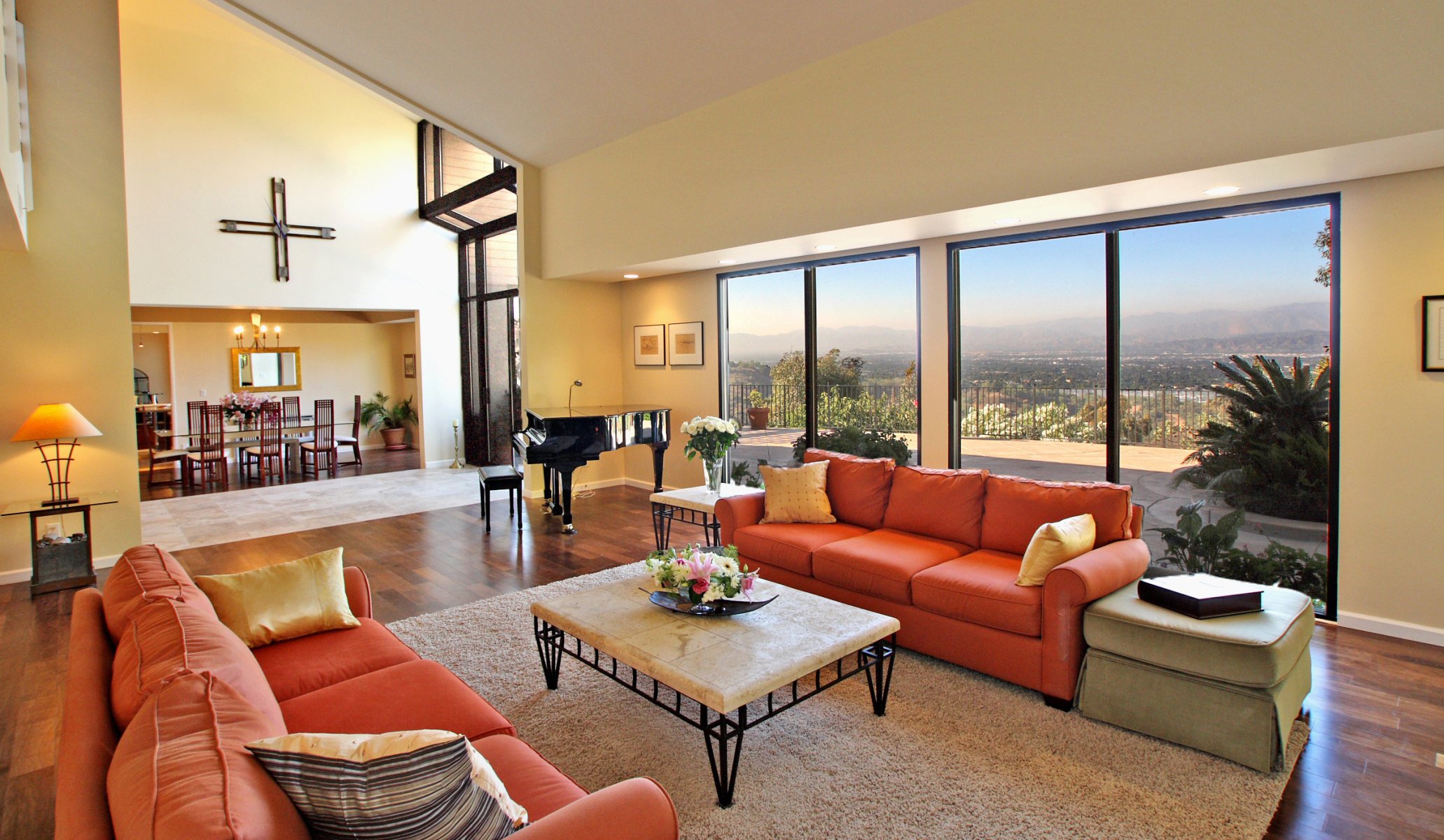 Стильный интерьер дома с крутым видом из окна - обои на телефон
