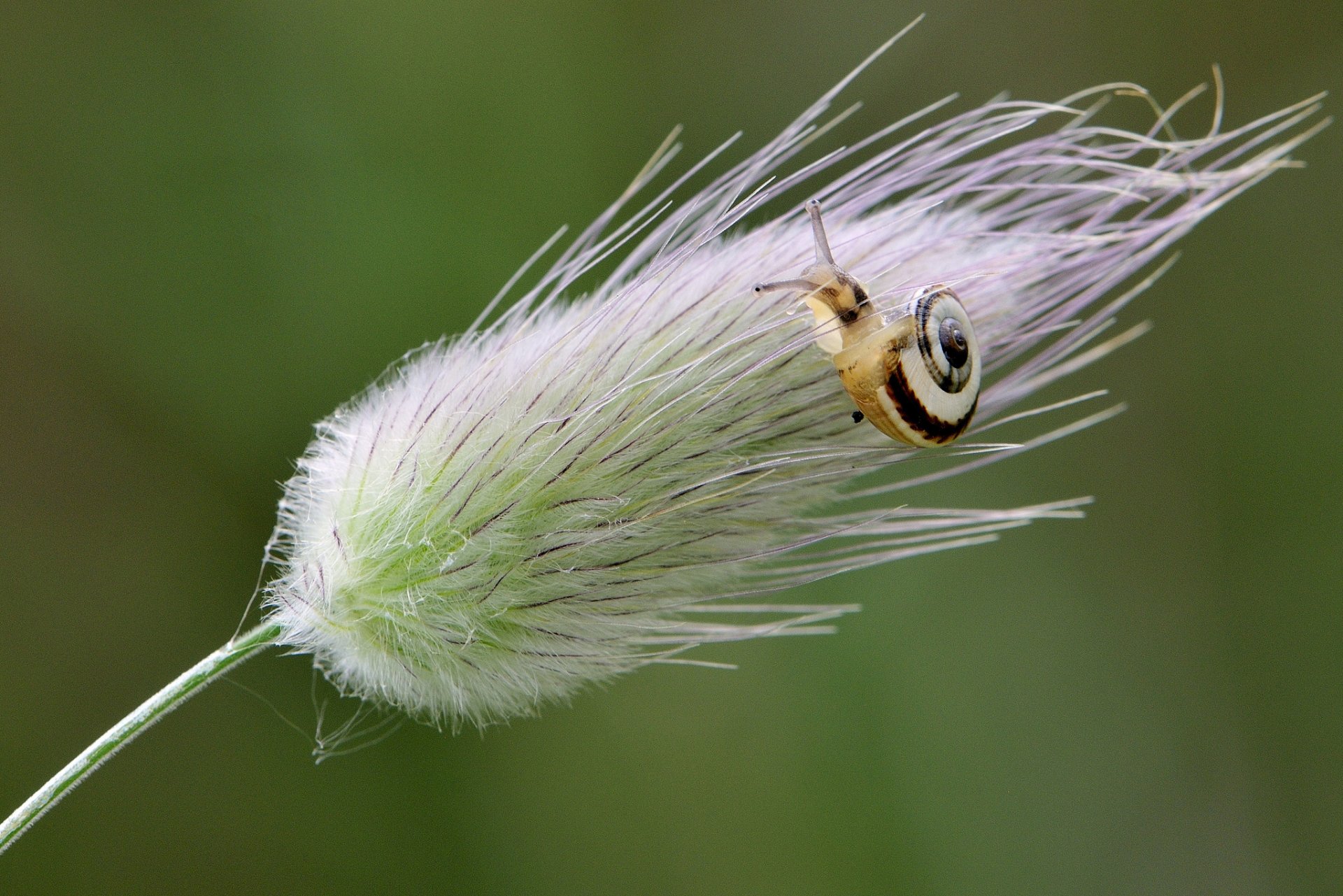 Маленткая улитка сидит на травинке - обои на рабочий стол