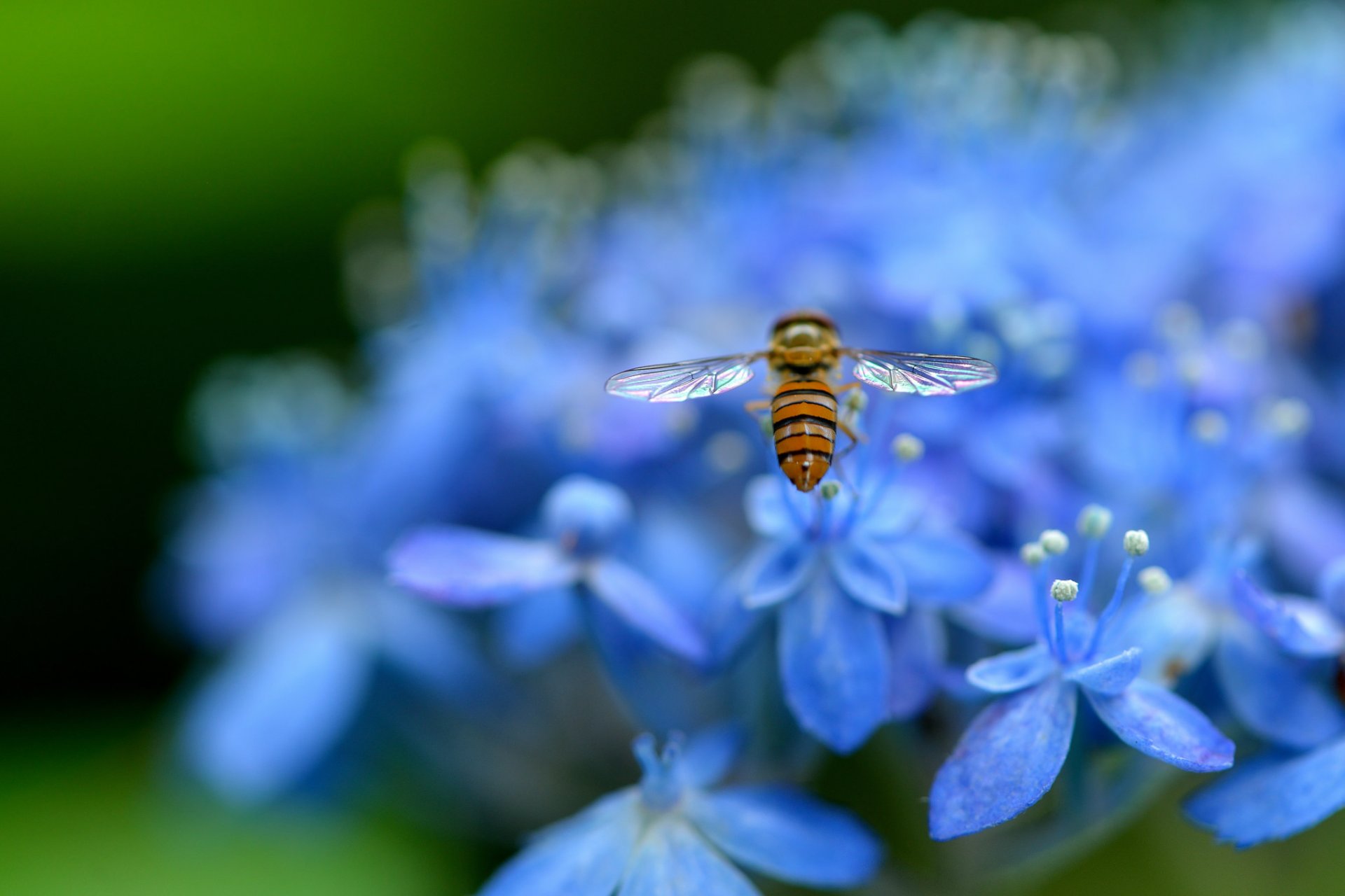 гортензия голубые лепестки цветы насекомое макро размытость природа