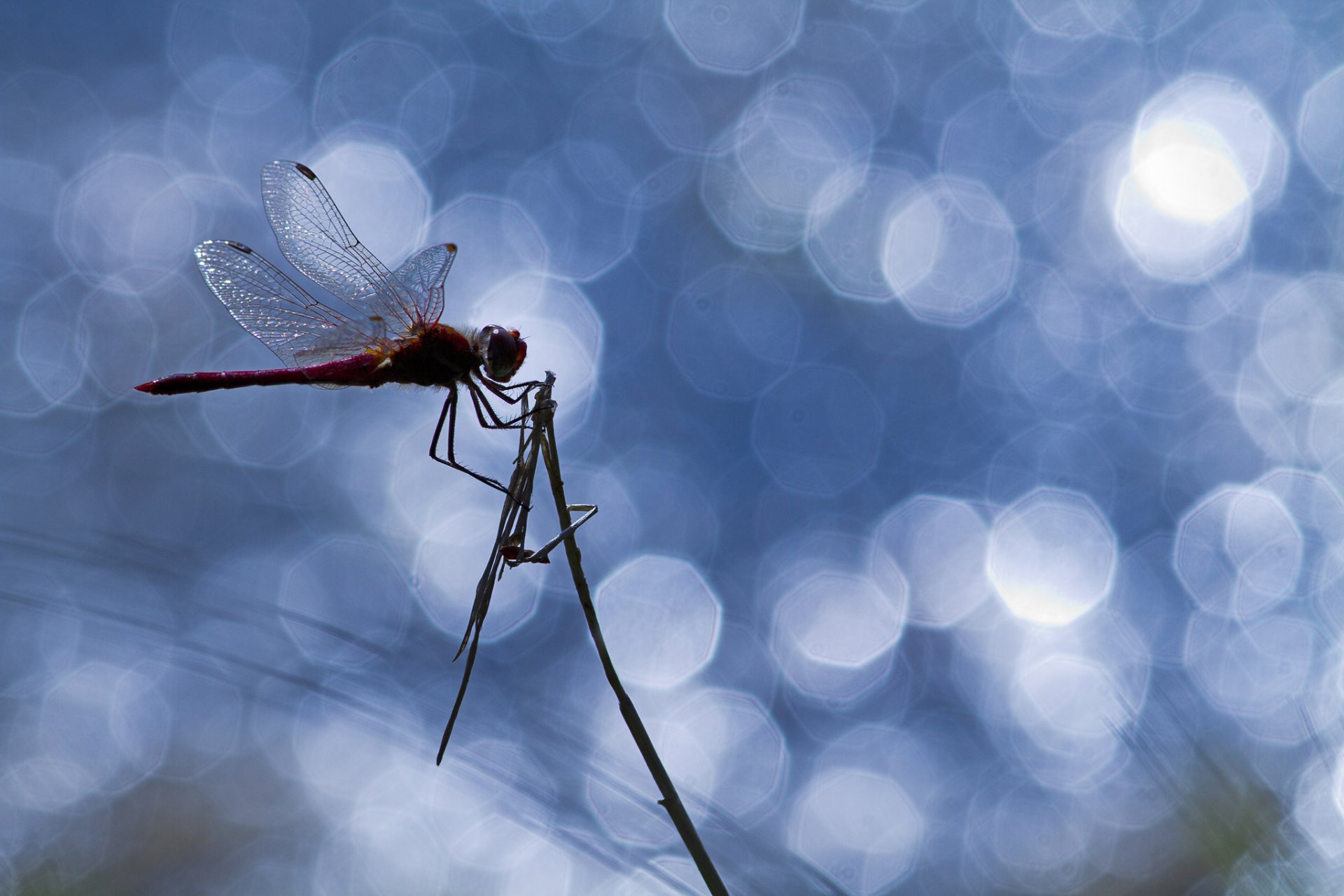 Стрекоза в солнечных бликах - обои на рабочий стол