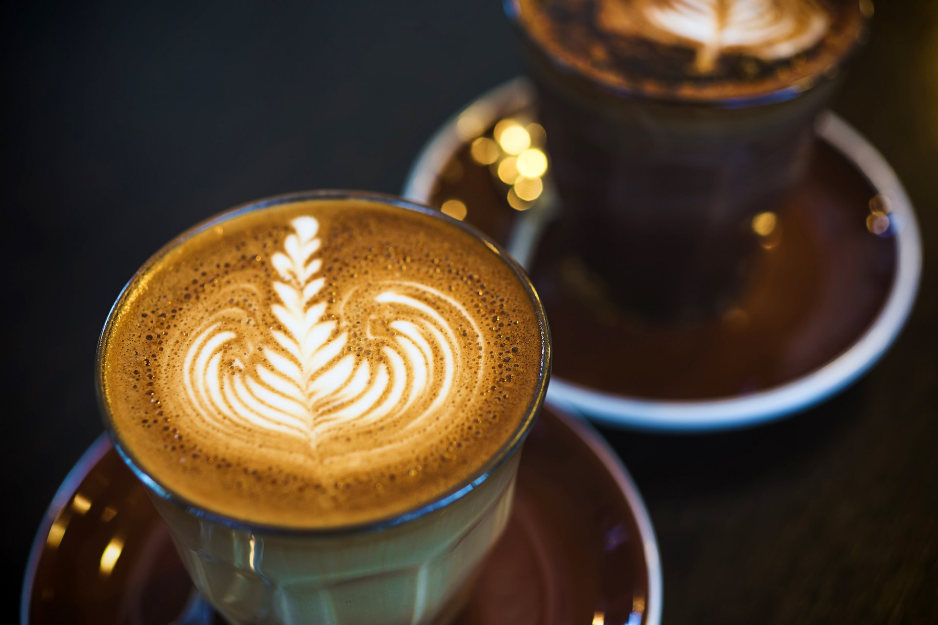 кофе напиток стаканы посуда пена узор макро свет