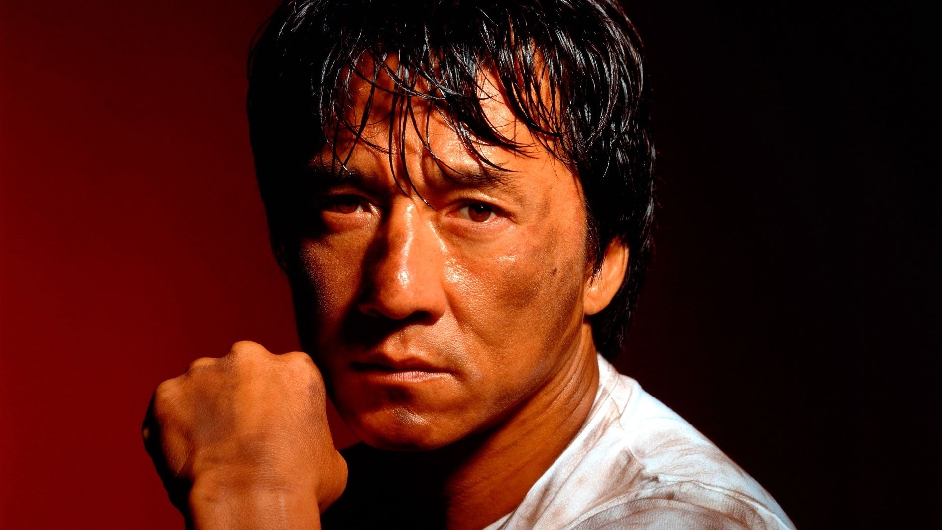 Джеки чан сидит с кулаком в руке - обои на рабочий стол