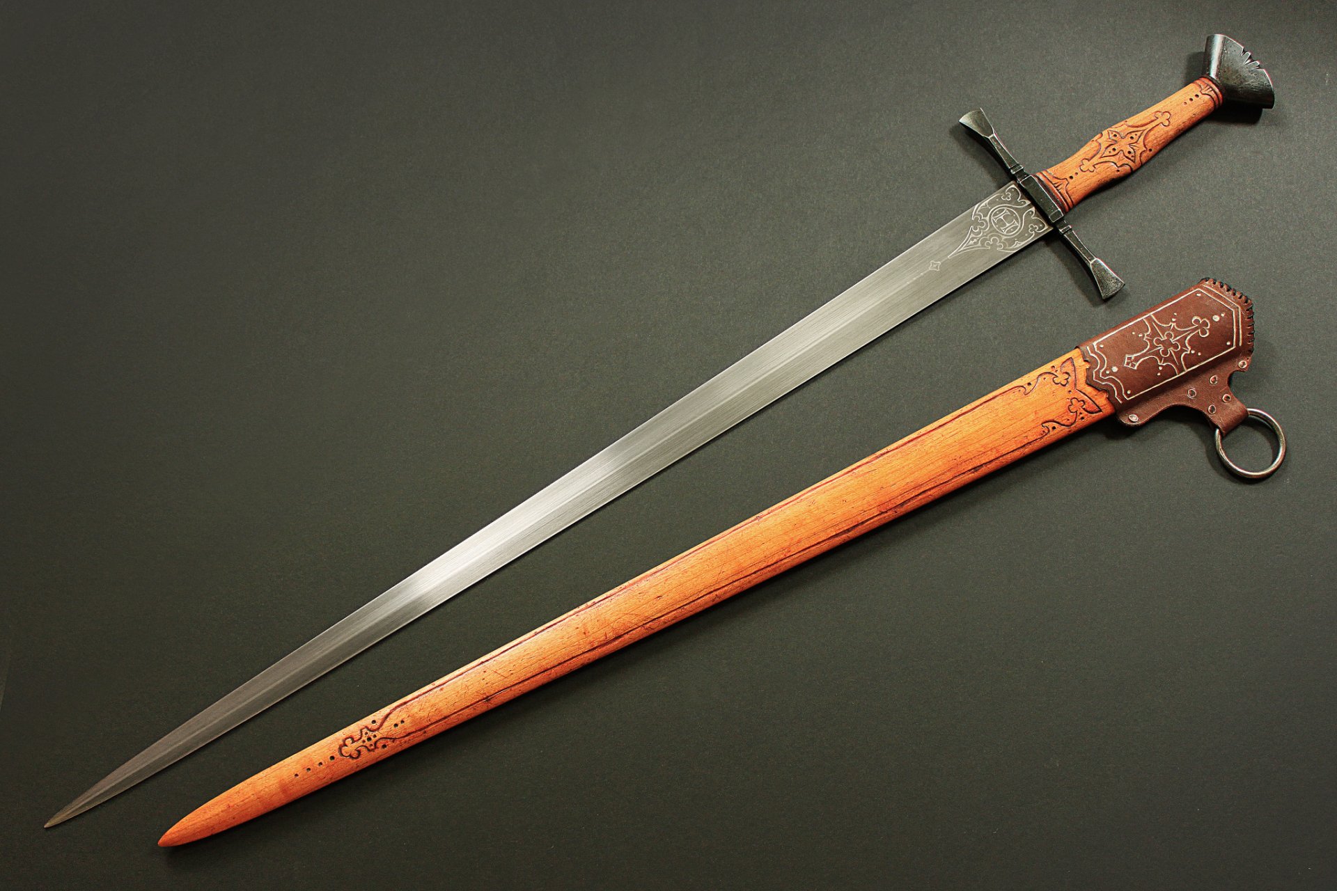 Меч с красивой рукояткой на темном фоне - обои на рабочий стол