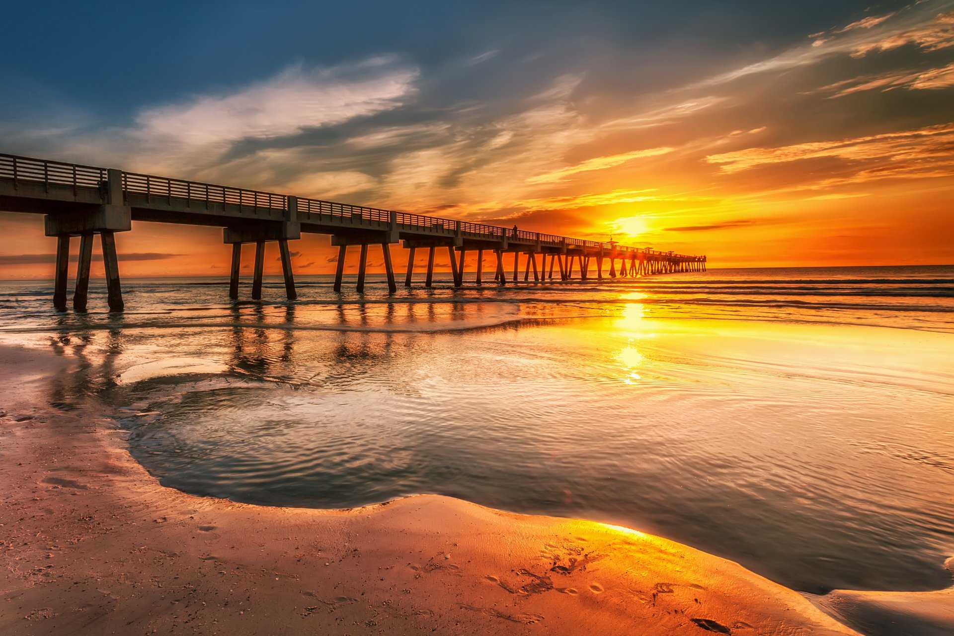 Теги:небо, облака, закат, пирс, причал, море, берег, песок, следы, люди