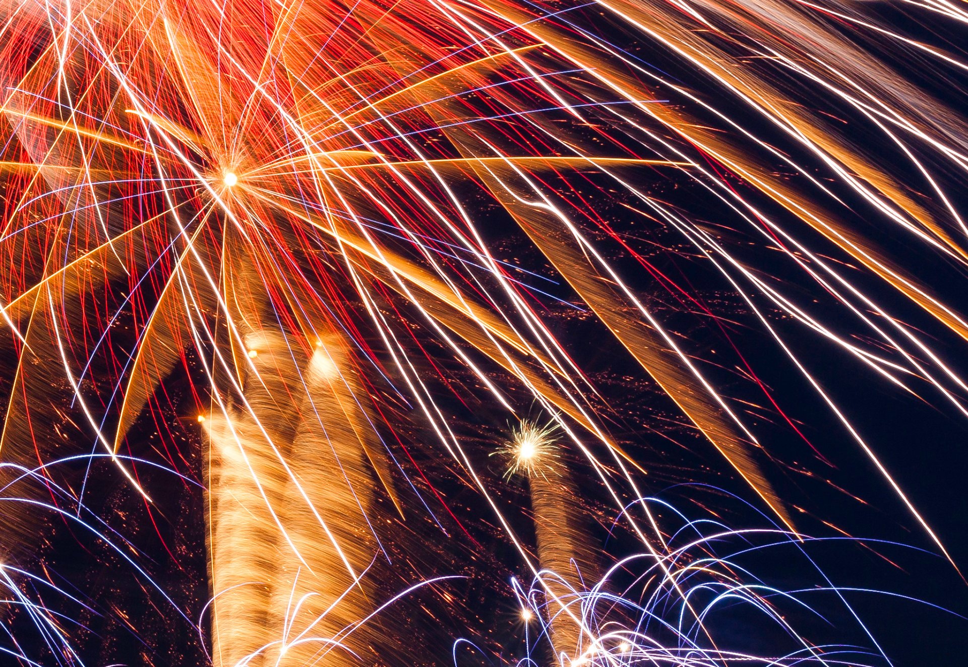 Огни фейерверка и салют на темном фоне - обои на рабочий стол
