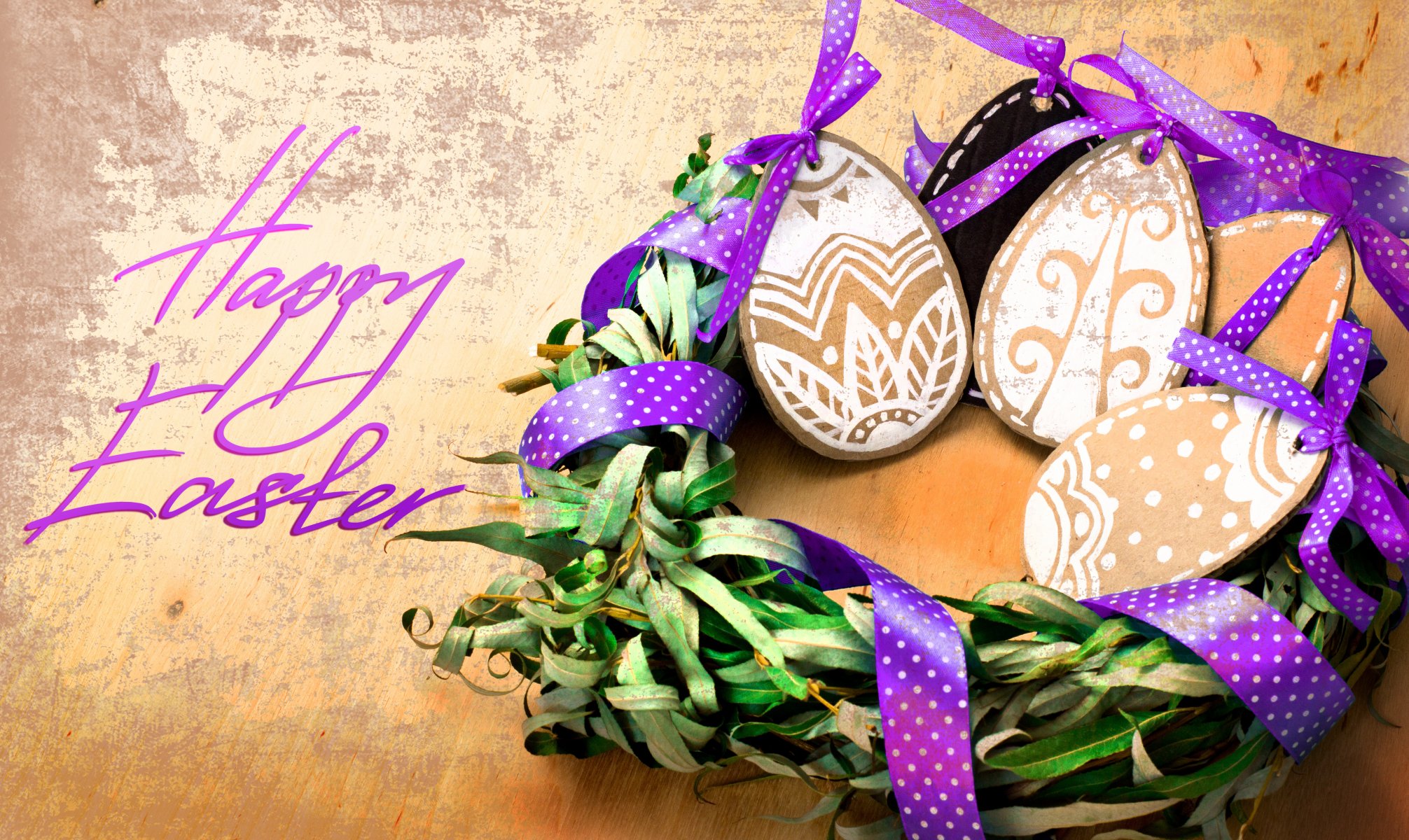 праздник пасха яйца гнездо ленты надпись дерево фигурки