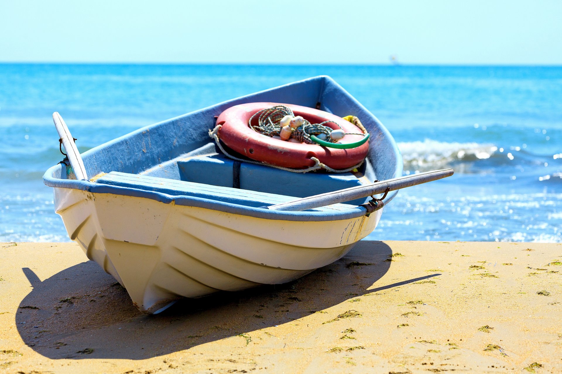 Судно на берегу. Чистый пляж. Голубая ложка - обои на рабочий стол