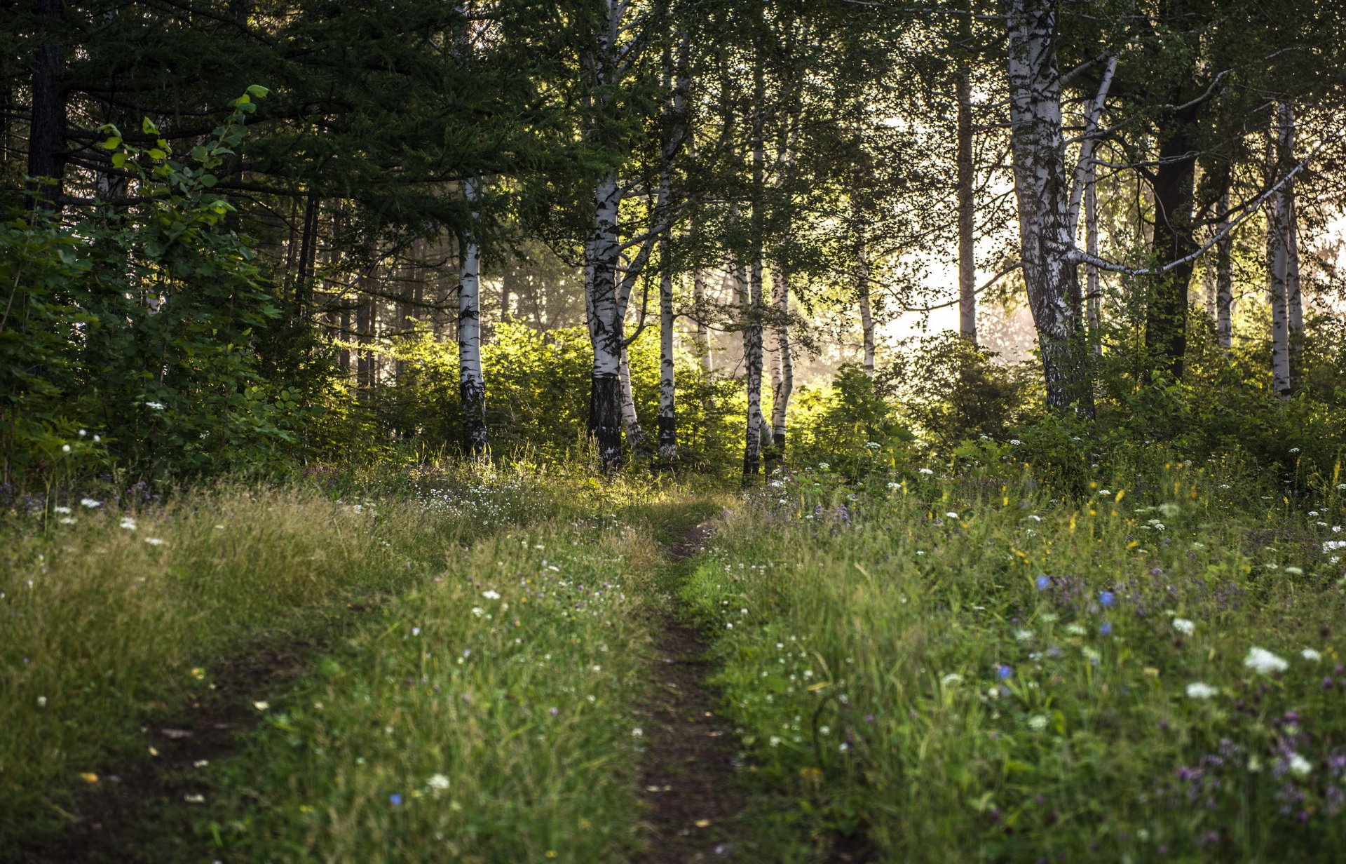 Туманный лес ранним утром - обои на рабочий стол