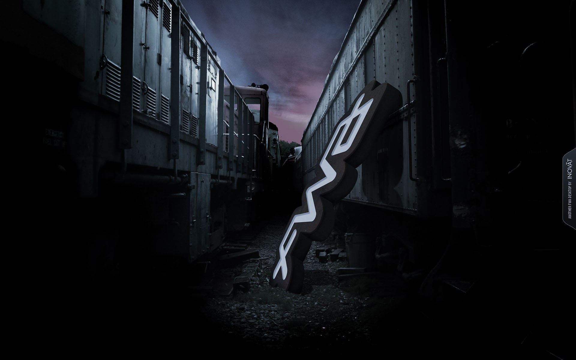 Картинка мрачного ночного города с валяющейся вывеской - обои на рабочий стол