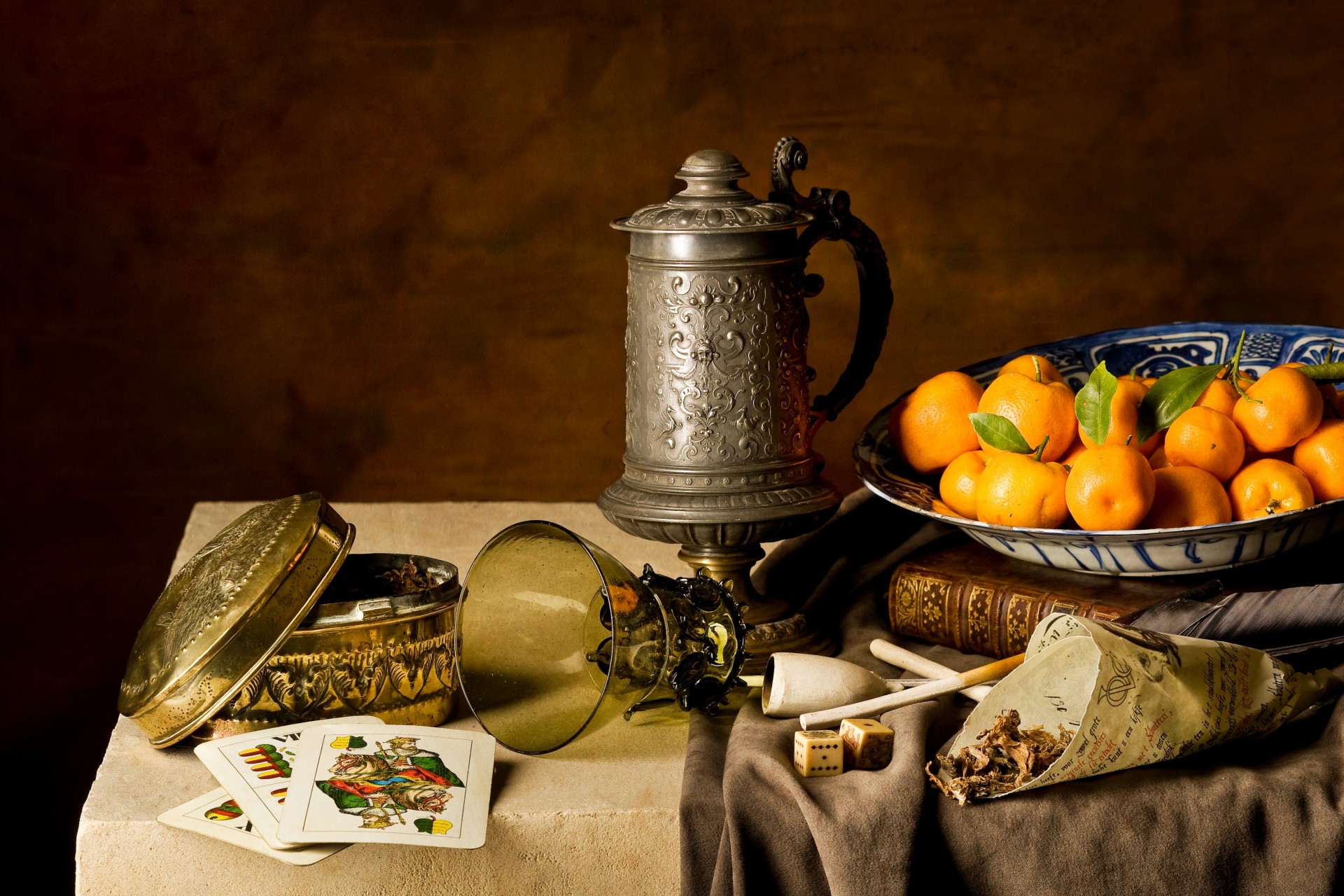 Натюрморт стакан карты и трубка - обои на рабочий стол