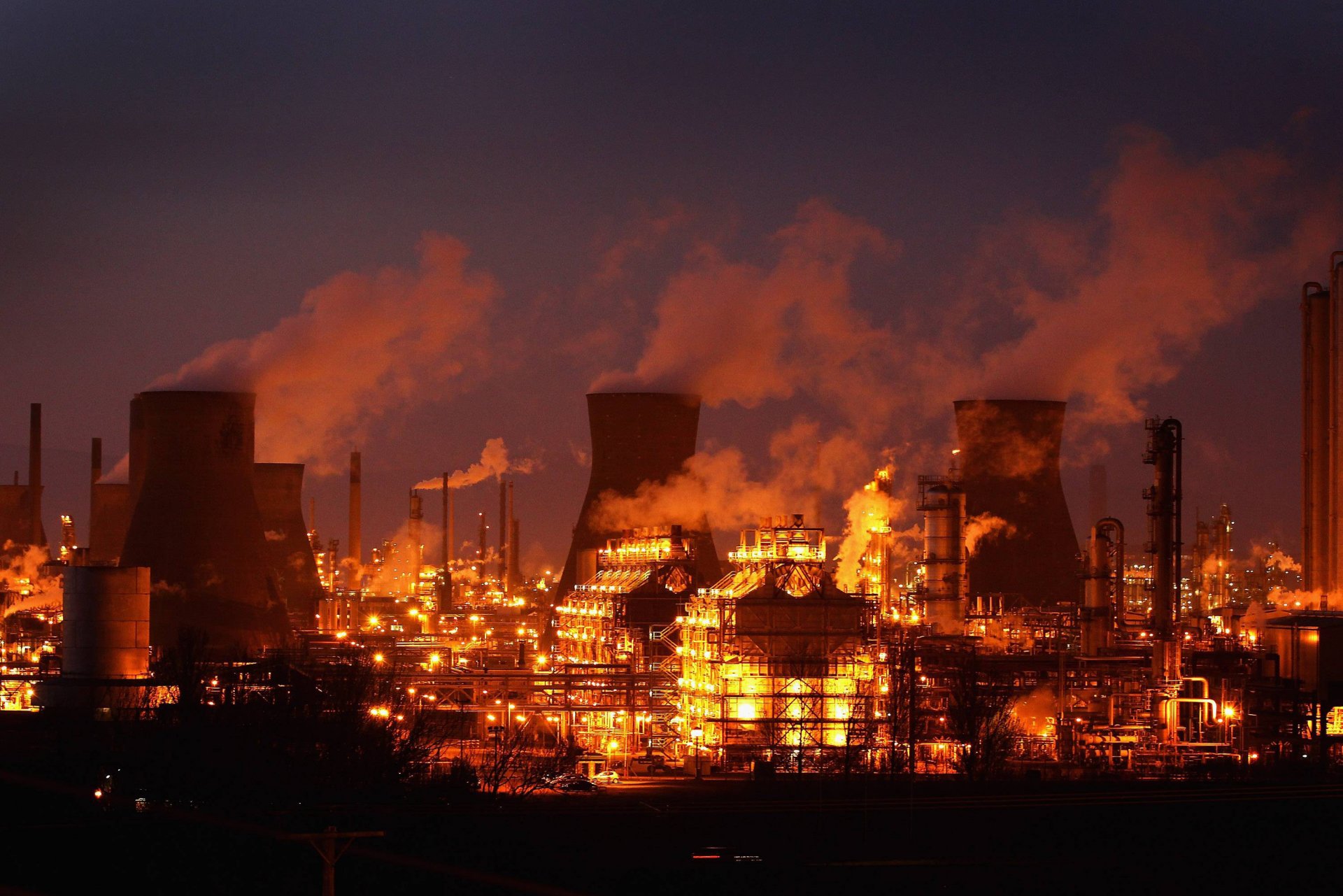 завод огни дым