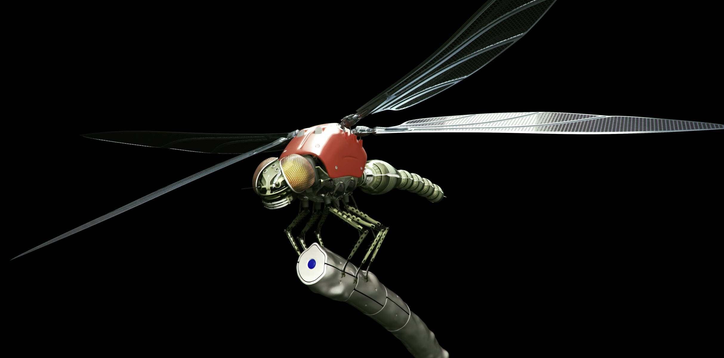 Металлическая робот-стрекоза с большими крыльями - обои на рабочий стол