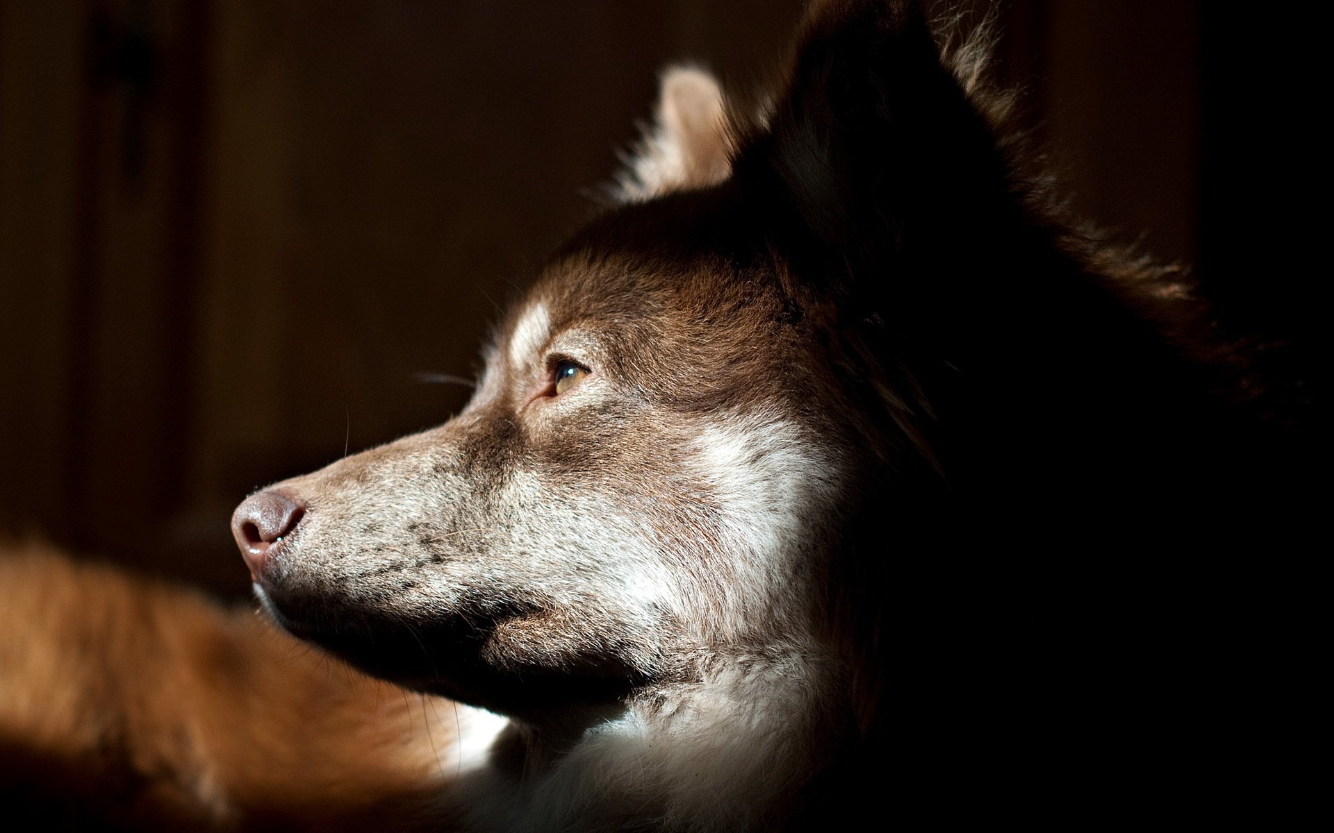 Собака сбоку смотрит куда-то в даль задумчиво - обои на рабочий стол