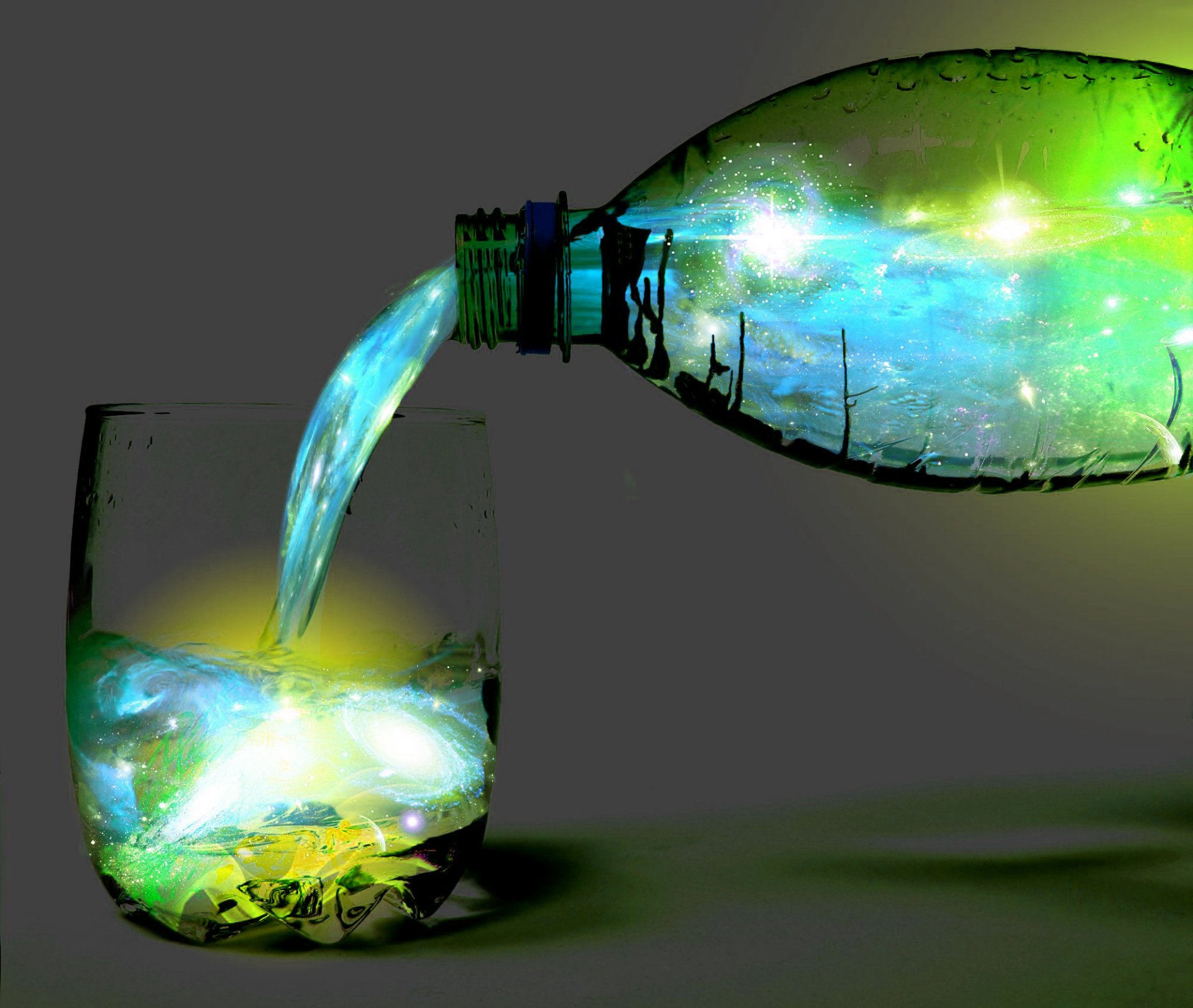 Из бутылки вселенной льётся в стакан - обои на рабочий стол