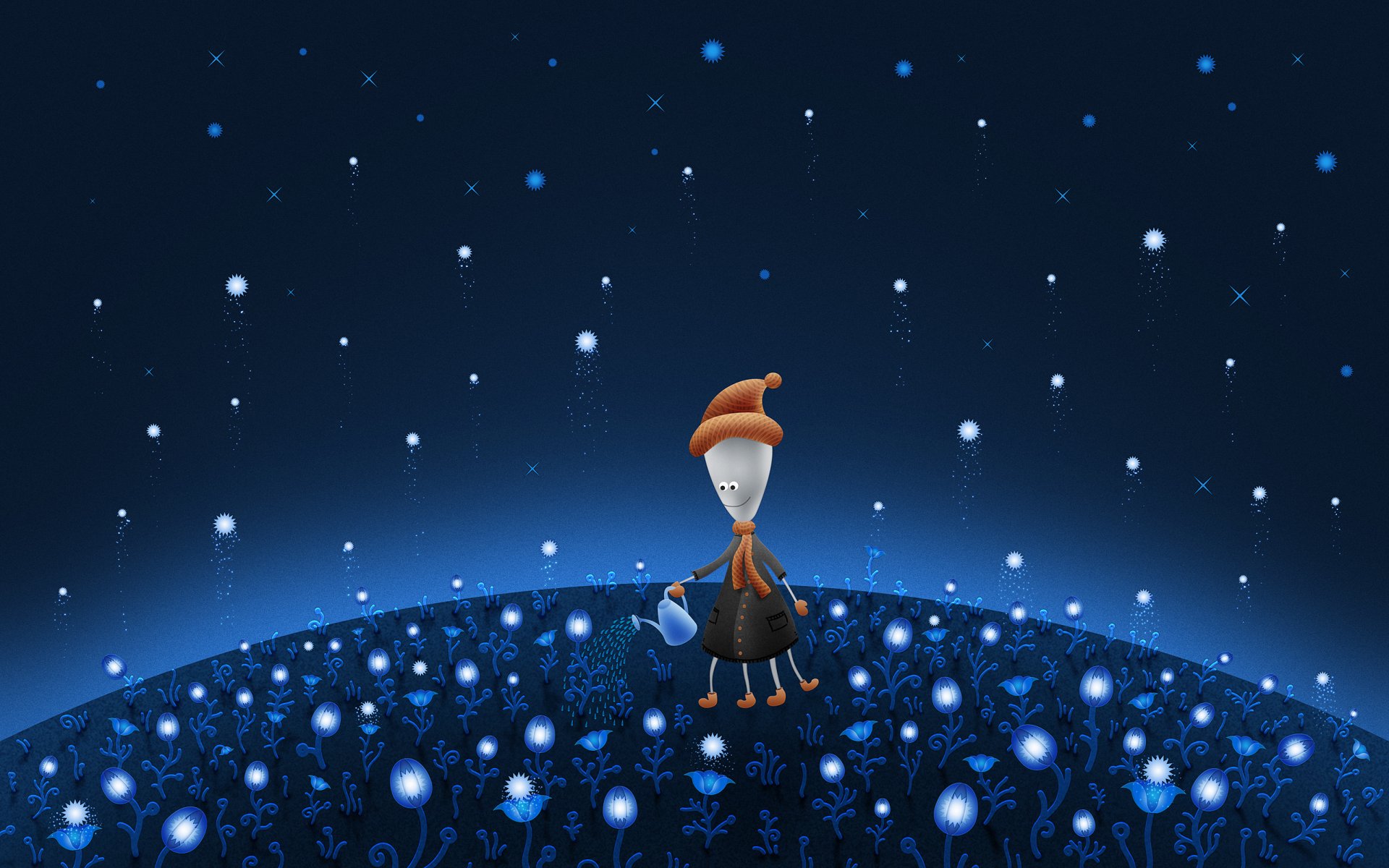 Пришелец поливает волшебные цветы на Марсе - обои на рабочий стол