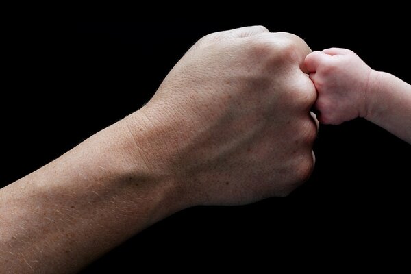 Отец и маленький сын играют на гитарах, сидя на лугу