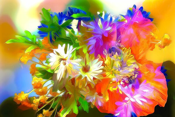 3д рисунок букет полевых цветов