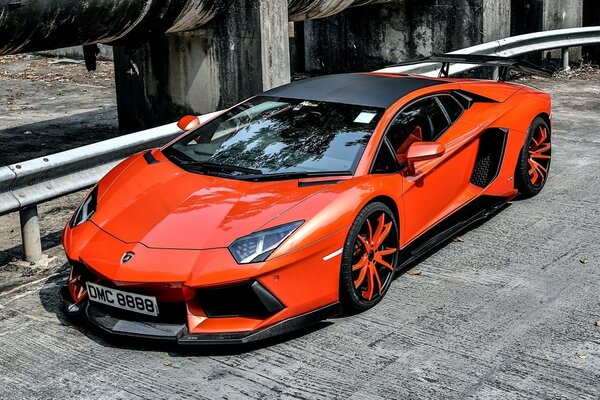 Обои настройка. Оранжевый автомобиль lamborghini aventador