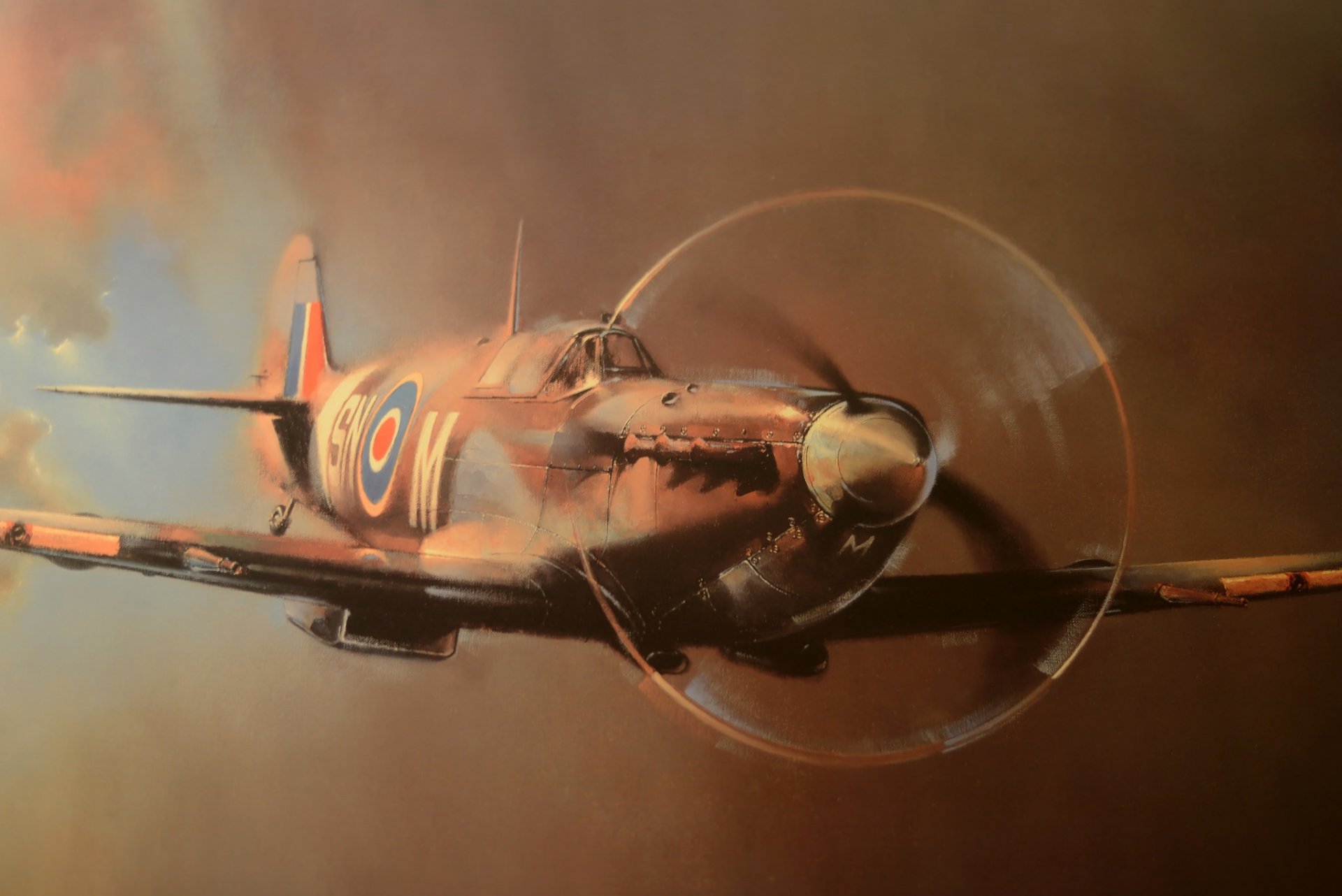 Истребитель spitfire в полете. Небо