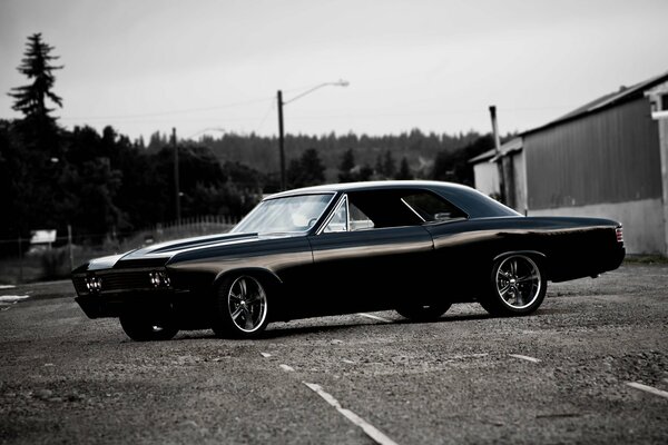 Chevrolet camaro ss чёрного цвета, спортивная машина на дорогеChevrolet camaro ss чёрного цвета, спортивная машина на дороге