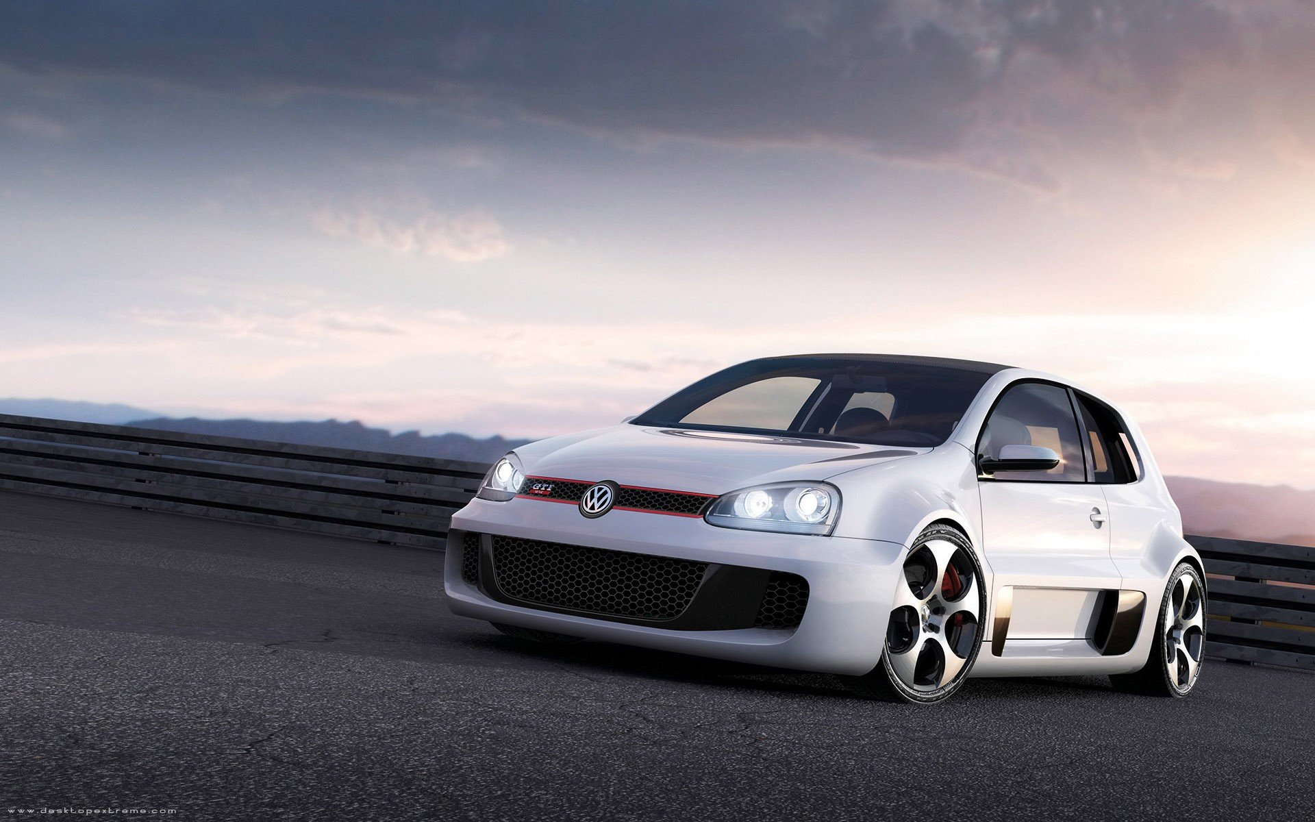 Зимой по дороге в лесу едет автомобиль volkswagen