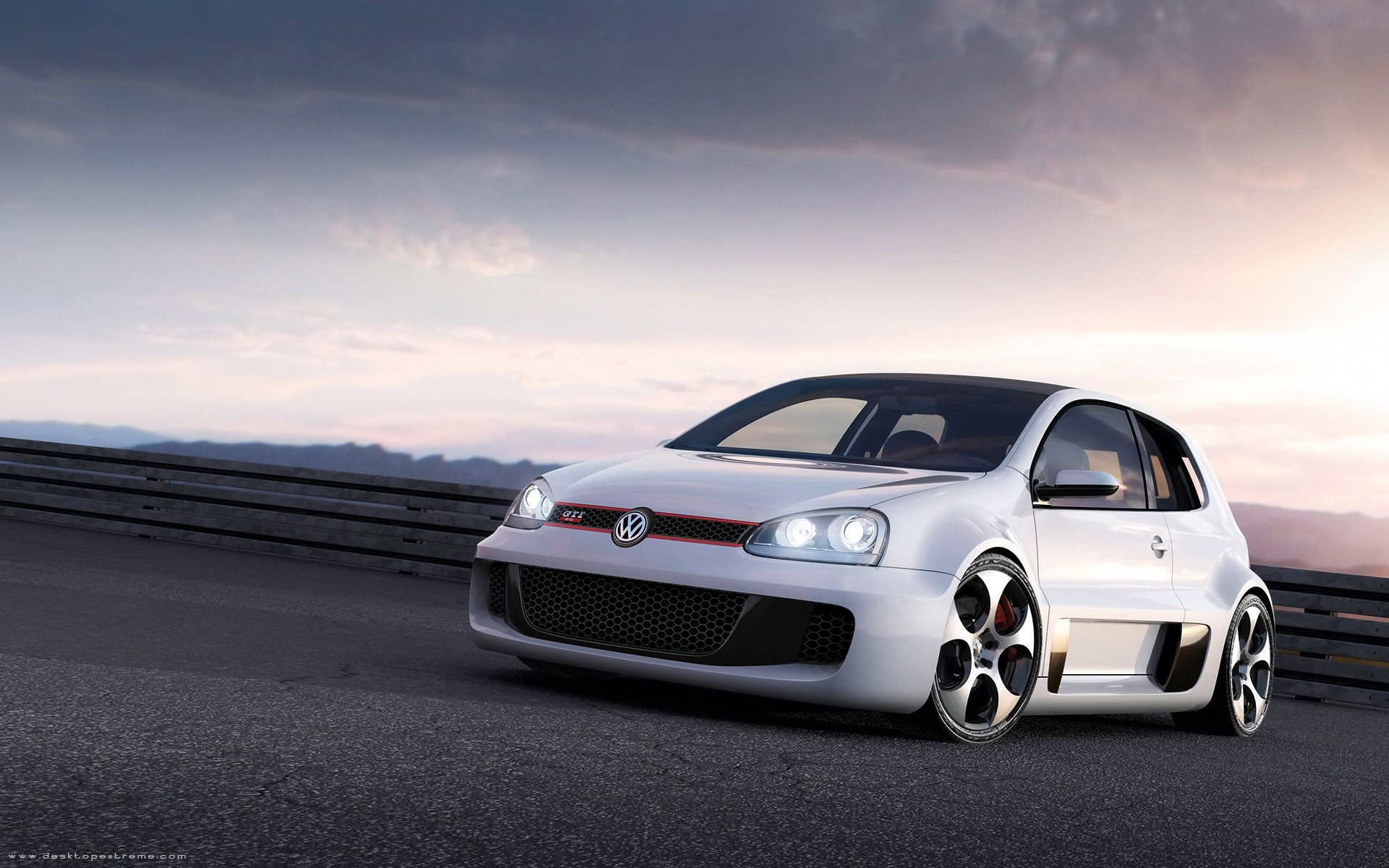 Volkswagen гольф перед мостом ночного города у рекиVolkswagen гольф перед мостом ночного города у реки