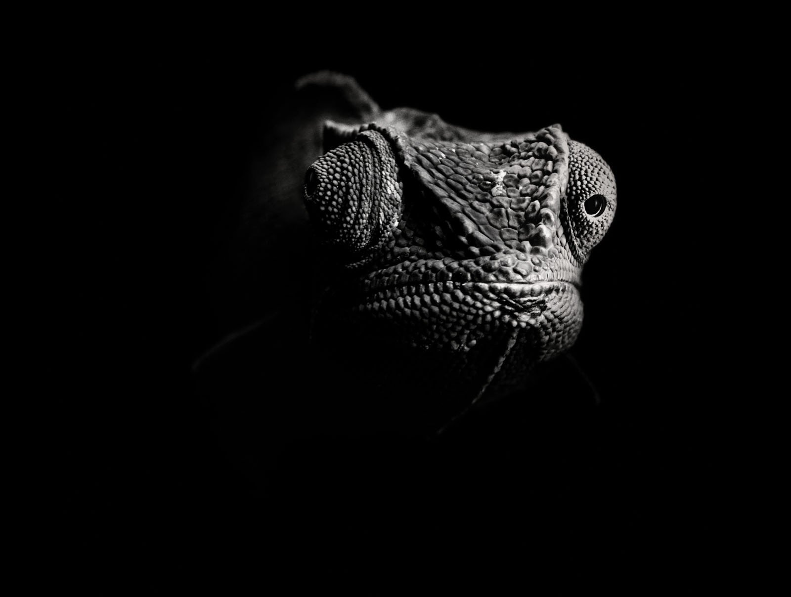 Черно-белый ящер на чёрном фоне - обои на рабочий стол