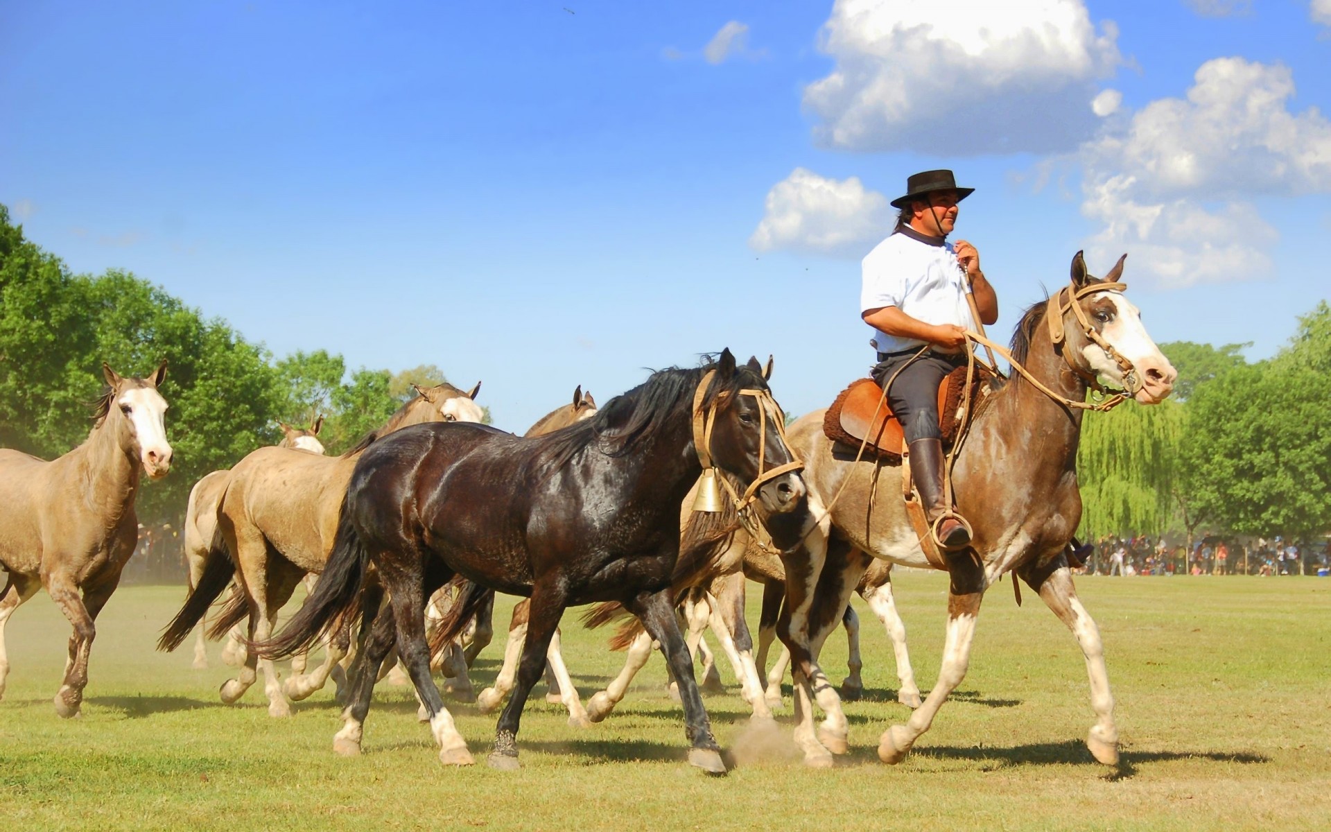 Ковбой с табуном разноцветных лошадей - обои на рабочий стол