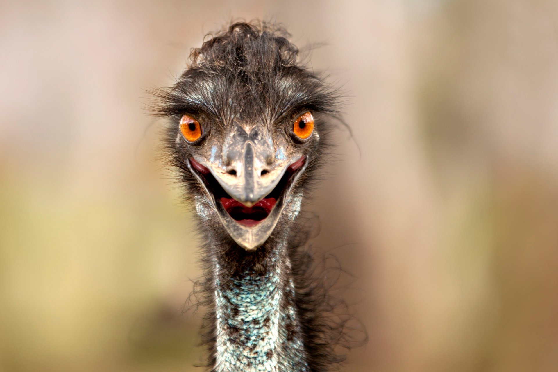 Возмущенный страус раскрыл клюв - обои на рабочий стол
