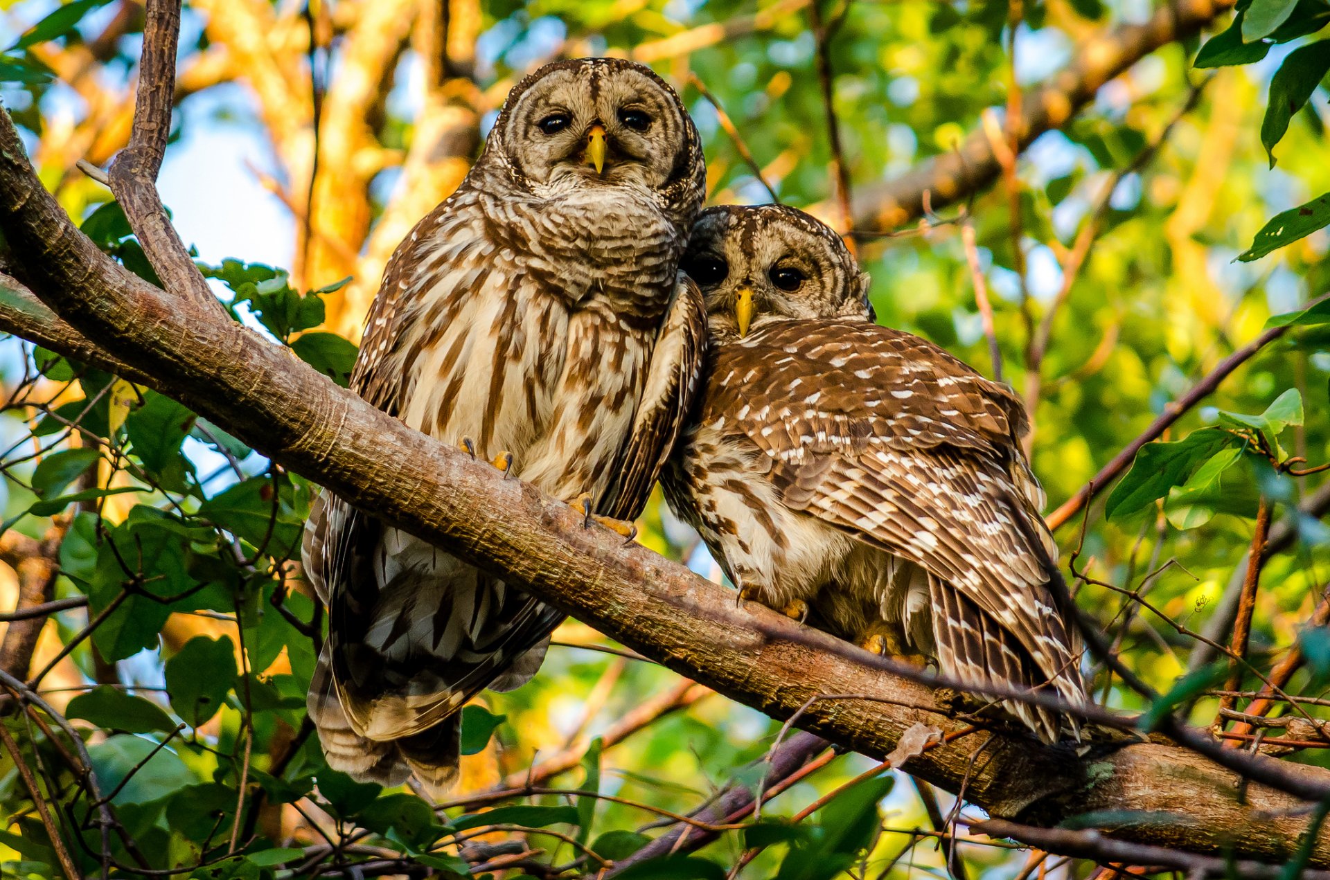 Теги:пёстрая неясыть, совы, птицы, парочка, ветка